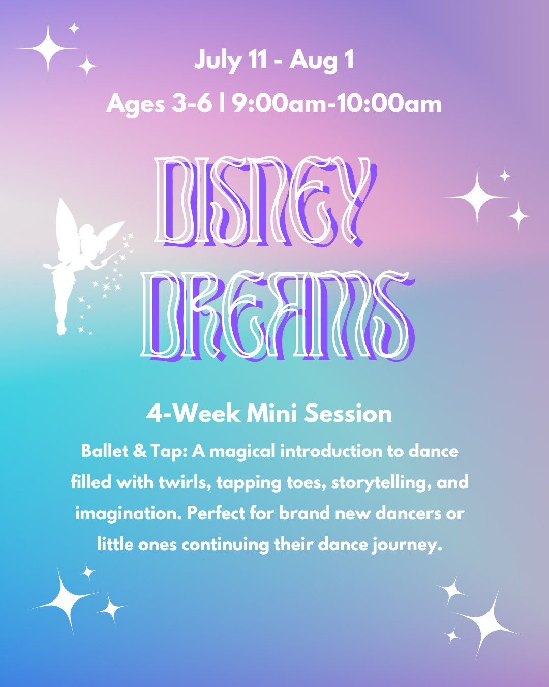 Each class runs for four Saturdays and blends technique, creativity, games, and a special themed twist every week. Dancers build skills, confidence, and friendships while enjoying a fresh summer experience in the studio.