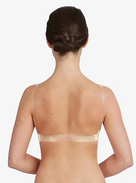 Dancers who may not need the extra support may be most comfortable with “Breast Petals” or a simple nude bralette (See Discount Dance Supply/Target options below). Victoria Secret also has options.